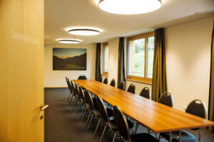 Zuoberst im Stammhaus ist der Lärchensaal wie gemacht für Ihren Vortrag, Ihre Gesprächsrunde oder Gruppe. Vom Balkon geniessen Sie eine atemberaubende Sicht auf Lohner, Engstligenfälle und Wildstrubel.