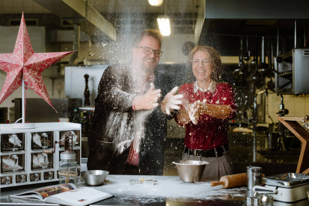 Und wenn’s so richtig weihnachtlich ist, helfen die beiden in der Küche aus. Da ist der Koch sicher froh.